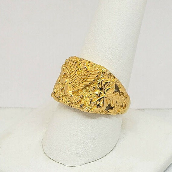 Solid 24k Yellow Gold Eagle Nugget Ring Large Mens Gold Etsy Uk
